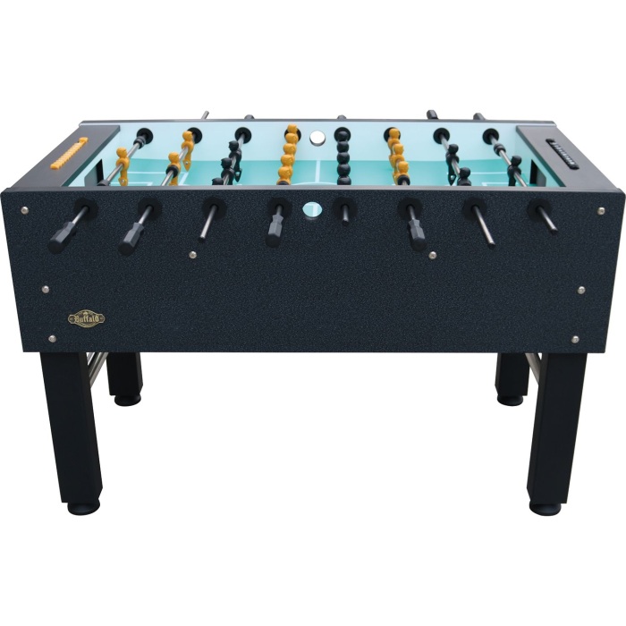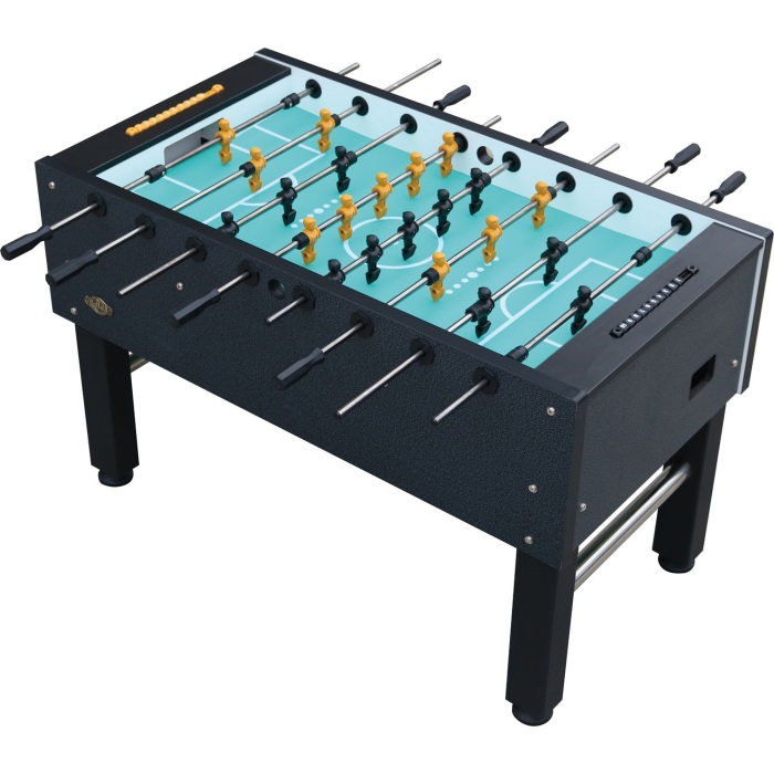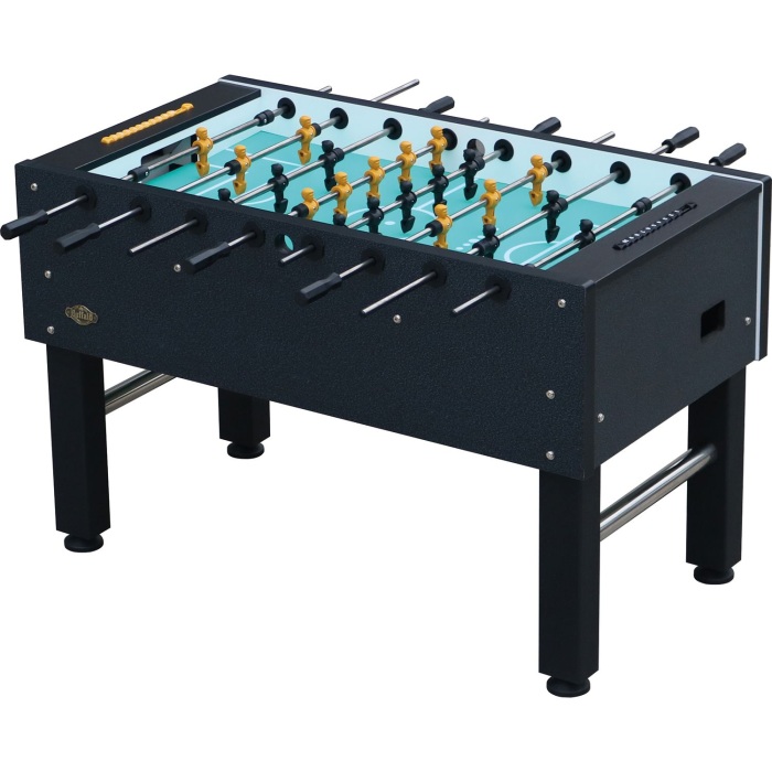 Igralna površina iz 17 mm debelega MDF je laminirana s HPL, kar zagotavlja gladko drsenje žogice in dobro kontrolo. Ojačane, kaljene votle jeklene palice (Ø 16 mm) omogočajo natančno vodenje igre, obtežene in privijačene figure iz izjemno trpežnega sintetičnega materiala pa poskrbijo za močnejše strele in boljši nadzor nad žogo. Vgrajeni števci zadetkov omogočajo enostavno spremljanje rezultata.